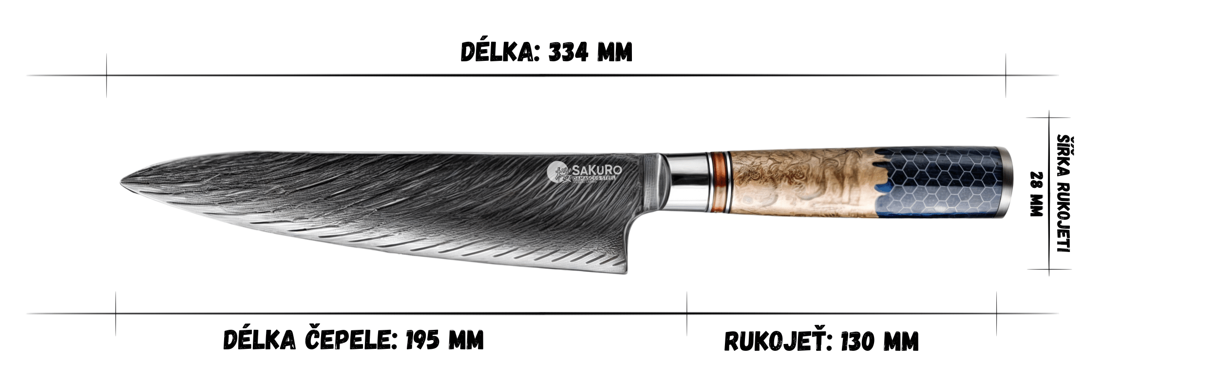 Ebben a készletben minden egyes kés 67 rétegű damaszkuszi acélból készült, AUS-10 maggal. Ez a „szuperacél” Japánból származik és