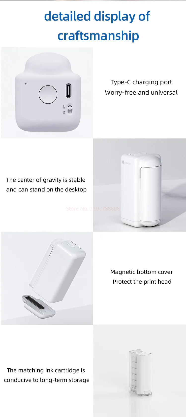 Hordozható címkenyomtató Evebot PrintPods, mini vezeték nélküli okosnyomtató, logó/QR-kód/vonalkód nyomtatás, kreatív tetoválás