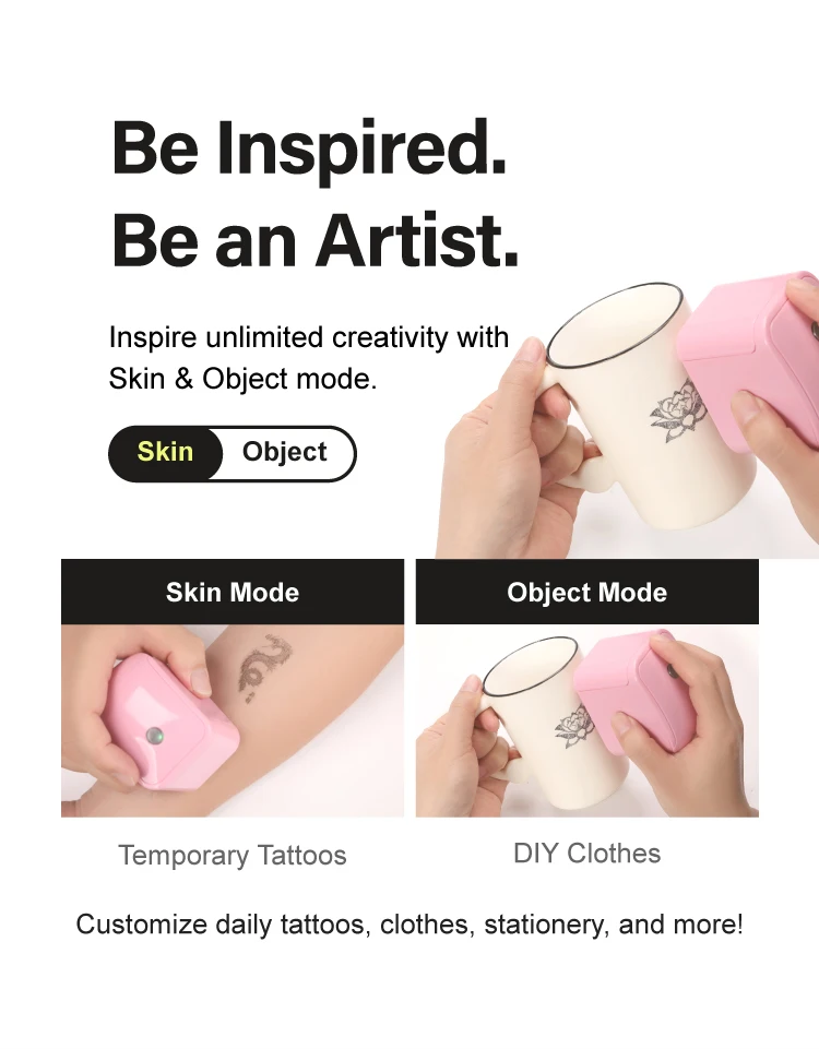 Mutassa meg egyedi stílusát, és bármikor nyomtasson mintákat közvetlenül a bőrére! Ez a teljesen hordozható ideiglenes tetováló nyomtató izgalmat visz a társasági összejövetelekbe, bulikba, céges rendezvényekbe és sok más eseménybe.