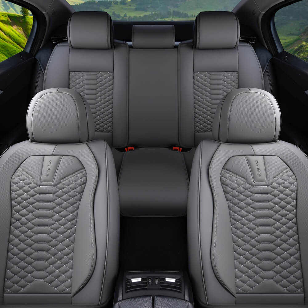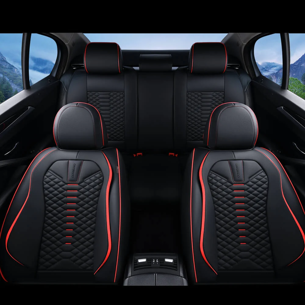 Coverado első és hátsó üléshuzat-szett, kiváló minőségű, vízálló műbőr, deréktámasz, vezető-utas oldali, hátsó ülésvédő, univerzális, teljes szett - minden modell testreszabását támogatja